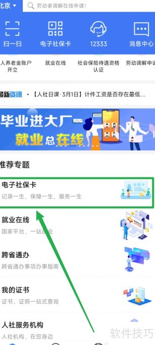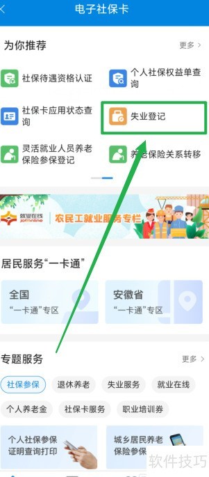 2、 进入电子社保卡页面,选择失业登记功能即可办理。