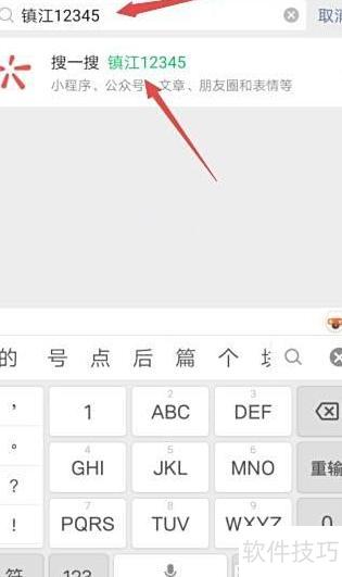 2、 输入镇江12345后,点击搜索按钮查找相关信息。