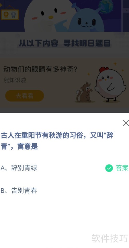 3、 蚂蚁庄园10月4日问答: