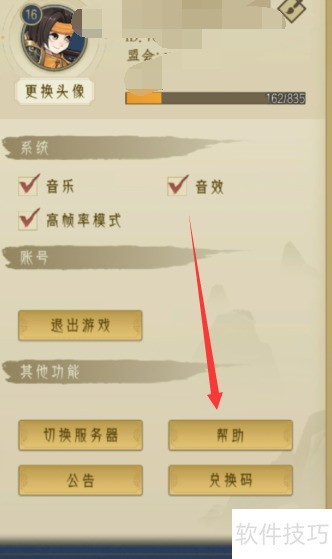 7、 进入千秋辞后,点击首页头像,再选择帮助选项即可。