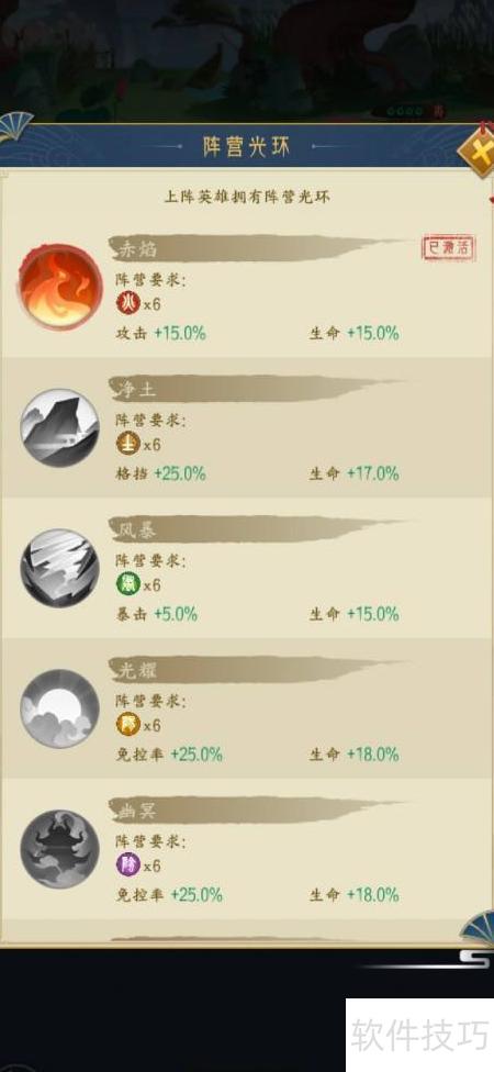 6、 第六:依据己方英雄搭配,查看阵容加成属性,合理选择上阵角色完成配置。