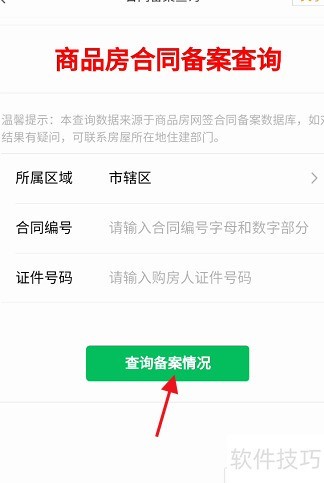 5、 进入商品房合同备案查询页面,输入合同编号和证件号码,点击查询按钮即可查看备案详情。