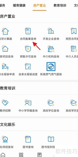 4、 进入便民服务,选择房产置业,点击合同备案查询即可。
