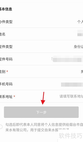 6、 进入个人水表安装页面,查看基本信息后点击下一步办理。