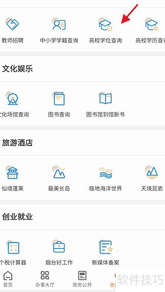 4、 进入便民服务,选择教育培训,点击高校学位查询即可。