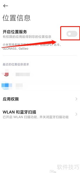 4、 进入位置设置,关闭右侧的开启位置服务按钮。