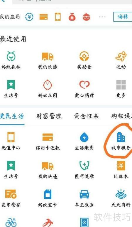 2、 点击上图更多按钮,进入界面后选择城市服务即可。