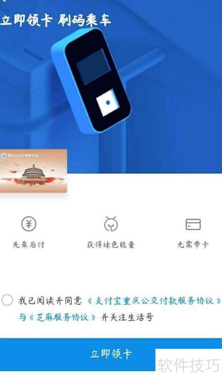 4、 打开公交乘车码功能,勾选同意相关协议后,点击领取即可获取使用。