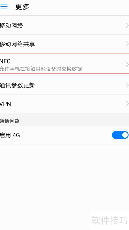 1、 手机需支持NFC功能(通常带指纹解锁的机型都具备),进入设置,找到更多选项并开启。