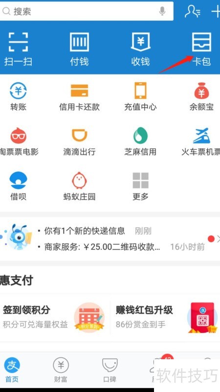 2、 打开支付宝首页,点击右上角的加号图标即可。