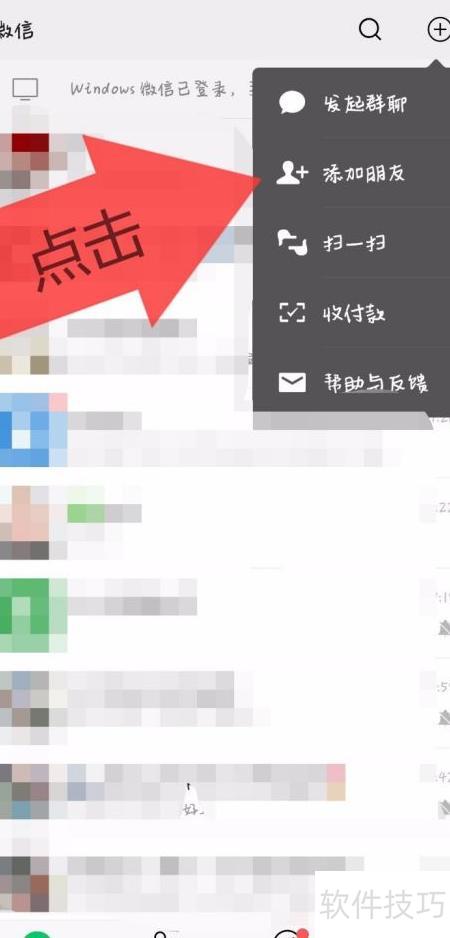 1、 打开微信,点击右上角加号,选择添加朋友功能。
