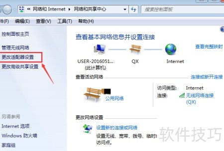 1、 右键点击任务栏网络图标,选择打开网络和共享中心,进入后点击更改适配器设置。
