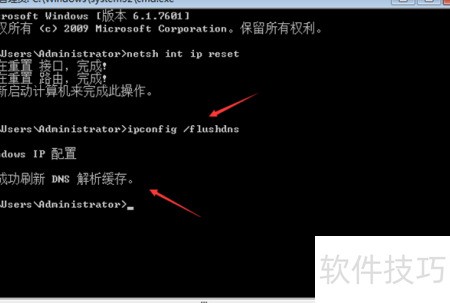 7、 输入ipconfig /flushdns命令后,系统会提示DNS解析缓存已成功刷新,接着重启计算机即可完成操作。