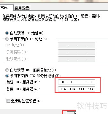 8、 在备用DNS服务器地址栏中填写114.114.114.114即可完成设置。