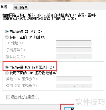 5、 选择自动获取DNS服务器地址,然后点击确定完成设置。