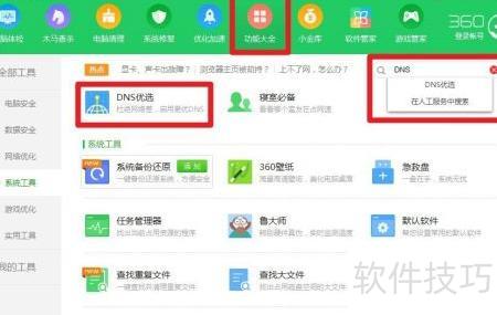3、 进入功能列表,搜索并开启DNS优选工具即可使用。