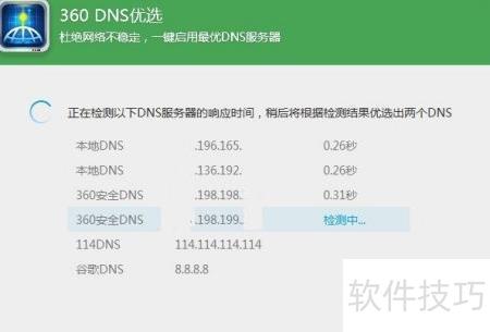5、 该工具检测各DNS服务器响应速度,优选出最快的两个。