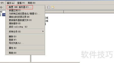 3、 在操作菜单中选择配置DNS服务器,启动DNS服务配置向导。