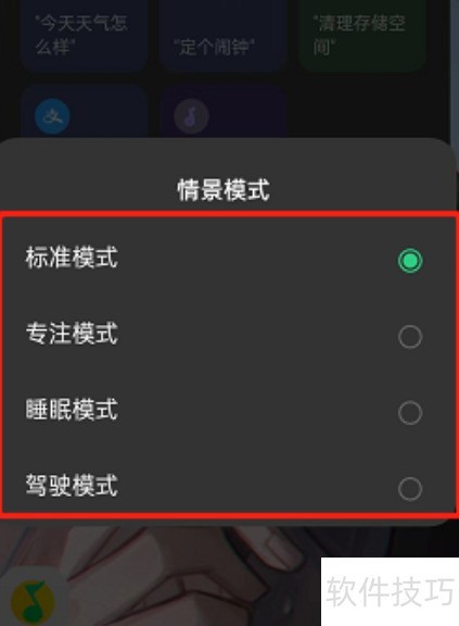 2、 在弹出的界面中,选择图示的情景模式选项。