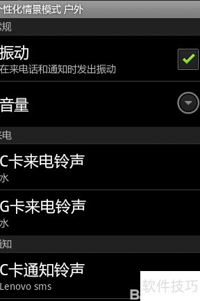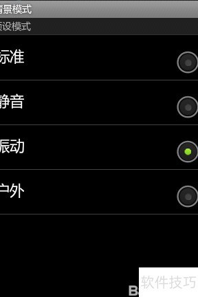 3、 子菜单提供标准、静音、振动和户外四种模式选择。