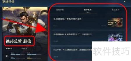 3、 进入英雄详情页即可了解赵信的操作技巧与玩法。