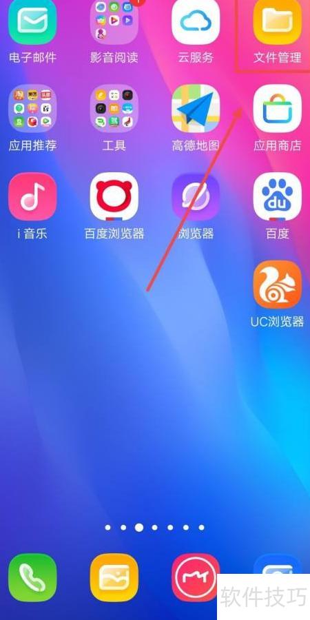 1、 所示,打开手机,点击文件管理应用。