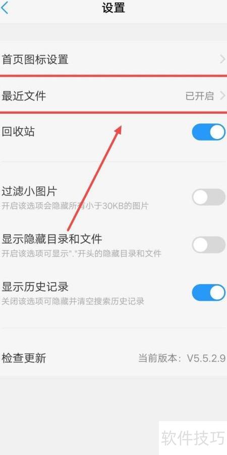 3、 所示,点击最近文件选项。