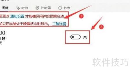 2、 进入闹钟与时钟菜单,确认已开启通知并关闭待机模式,以确保闹钟正常运行,随后点击开启闹钟功能即可。