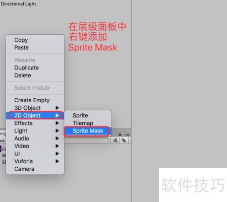 3、 在场景中右键点击,选择添加Sprite Mask,操作所示。