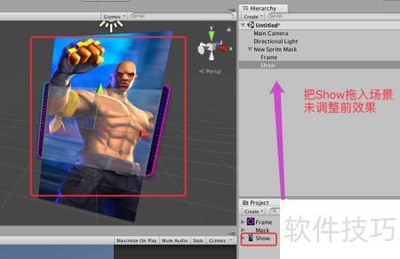 6、 将Show图拖拽至New Sprite Mask下作为子对象,操作所示。