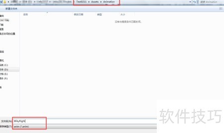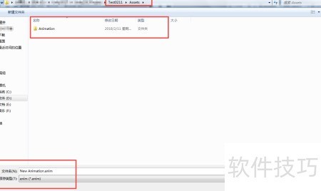 5、 选中Animation文件夹,为动画命名后保存至该文件夹内,操作步骤所示。