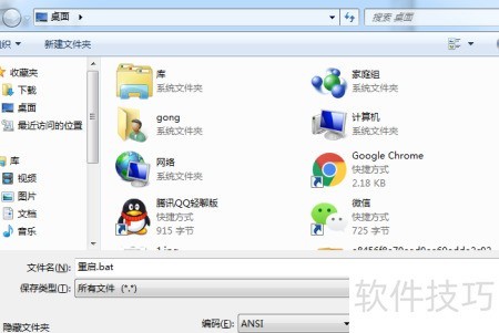 5、 保存为重启.bat文件