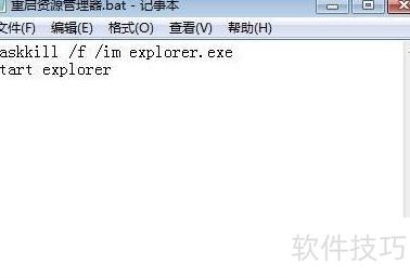 2、 保存文件为重启资源管理器.bat