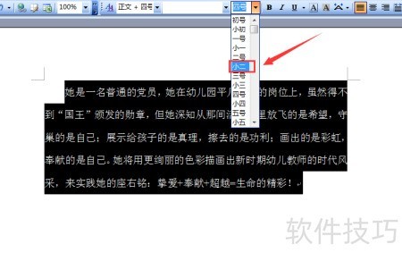 5、 点击字号下拉菜单,选择其中的小二选项即可。