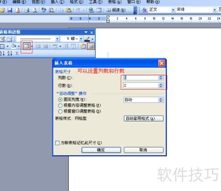 4、 点击后选择桌面,可绘制表格并设置行列,确认设置后所示。