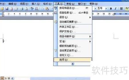 1、 打开Word 2003,点击菜单栏中的工具,在弹出的菜单中选择选项命令。