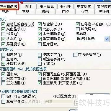 2、 在选项窗口中点击拼写和语法标签