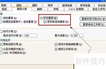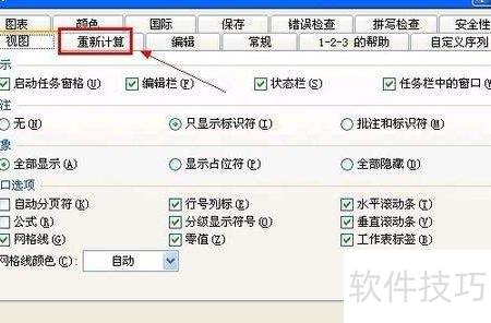 5、 进入选项窗口,切换至重新计算标签页