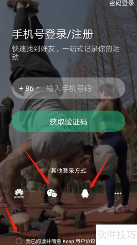 3、 选择登录或注册方式进入keepAPP,操作所示。
