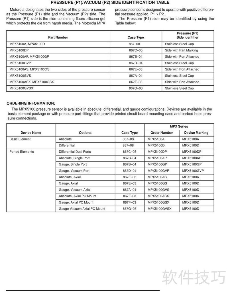 、 本文是MOTOROLA MPX5100压力传感器说明书,详细介绍该产品的操作方法及常见问题的处理方案,帮助用户正确使用并解决使用过程中可能出现的故障。