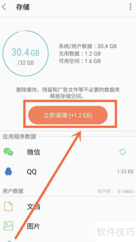 3、 进入存储界面,点击立即清理即可。