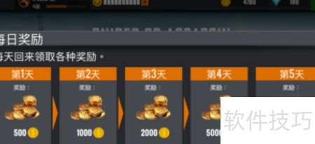 2、 游戏设有每日签到奖励,连续登录可获得金币,第五天还能领取一把强力武器。