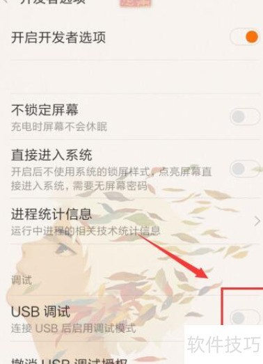 12、 开启USB调试功能,需在设置中选中并启用该选项。