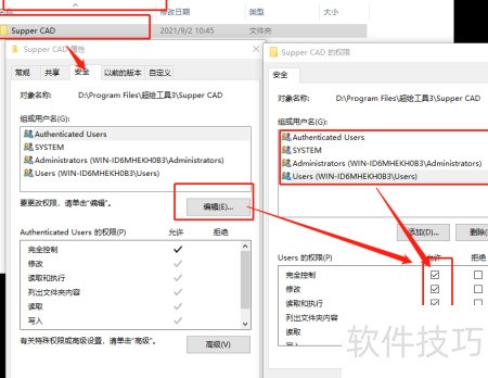4、 安装软件后,进入属性中的安全选项,修改相应权限即可。