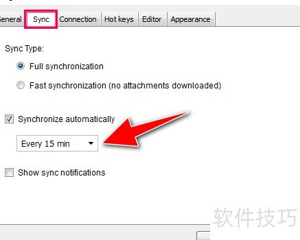 4、 在Sync菜单中,时间同步默认设置为每15分钟自动进行一次。