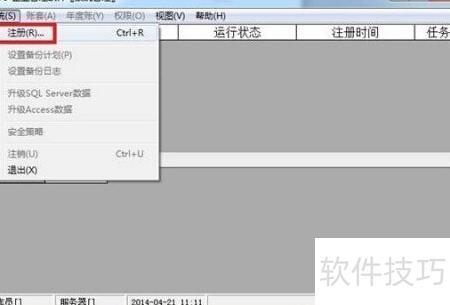 2、 进入系统菜单,选择注册选项。
