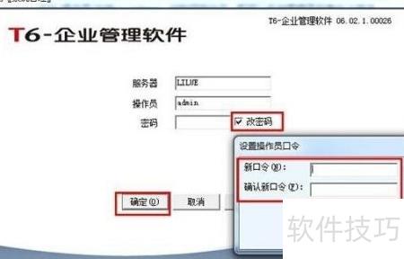 4、 如需修改密码,请勾选改密码选项,点击确定,弹出设置操作员口令窗口后,输入新密码并确认即可完成更改。