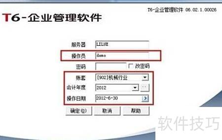8、 账套主管登录时需在窗口选择账套、会计年度及操作日期,步骤与系统管理员相近但必填项不同。