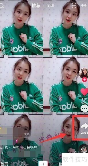 1、 刷到六宫格视频时,点击分享按钮即可,操作所示。