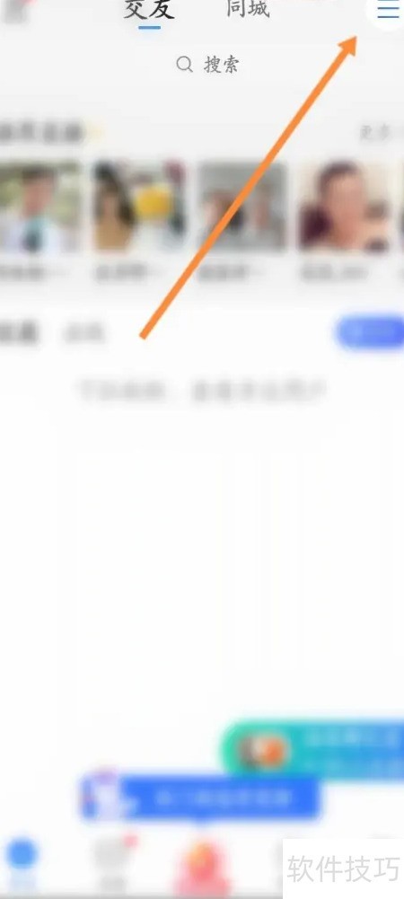 1、 打开手机Blued应用,点击顶部三条横线图标。